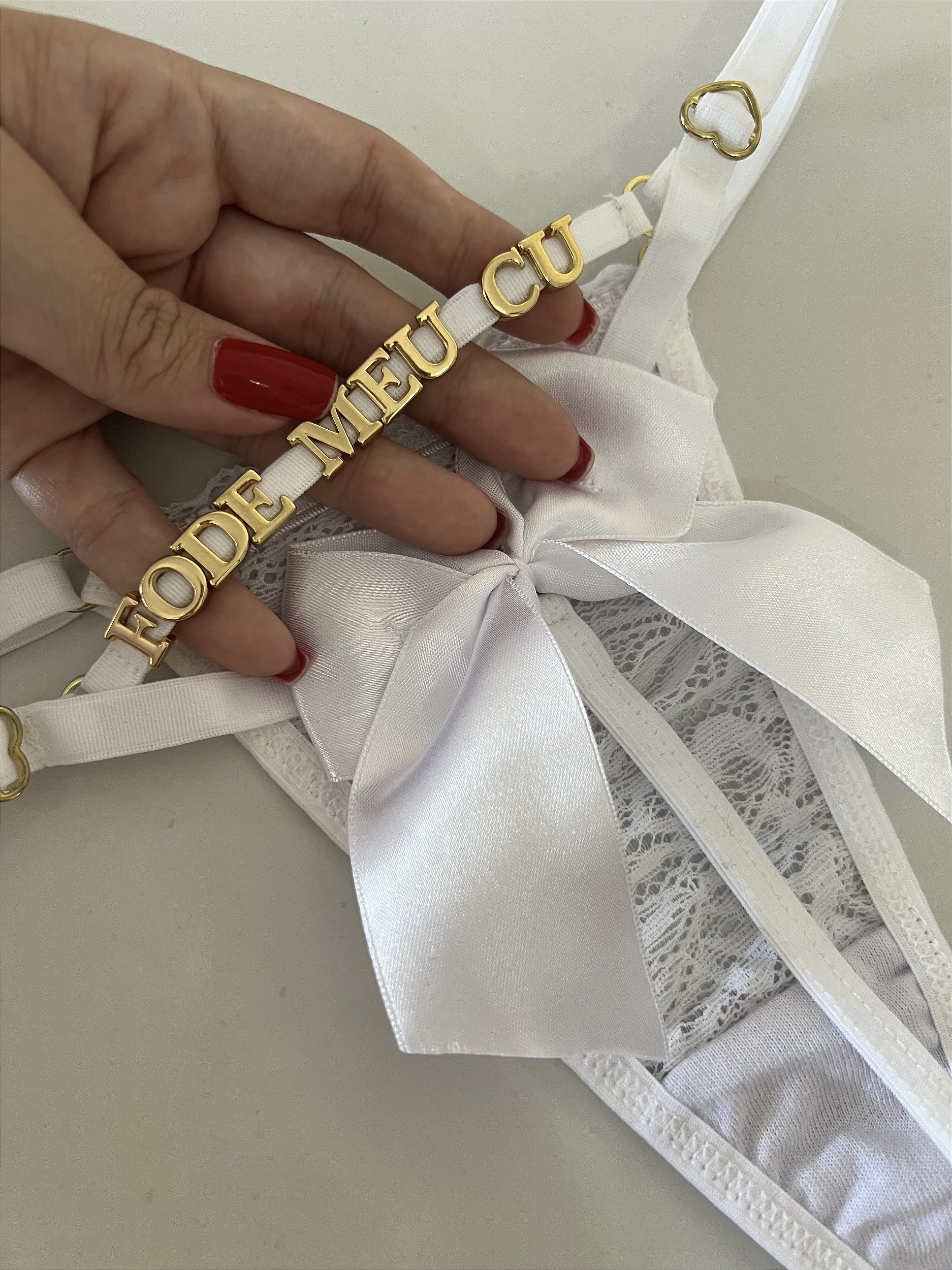 Calcinha personalizada sexy fio| laço - Branca